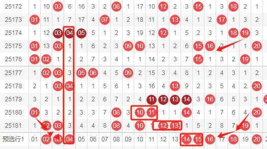 今日一区号码建议参考02和03的重号形态,今日这个位置02 03建议参考一码开出,此位置相对重要,建议择其一中一码做胆,做为一区龙头,参考04的等期遗漏回补。二区号码建议参考下14 15的阶梯下落走势,防守18遗漏七期斜连,建议参考16的等距斜连,同时建议参考20的同形态的遗漏走势。今日一二区推荐号码02 03 04 14 15 16 18 20