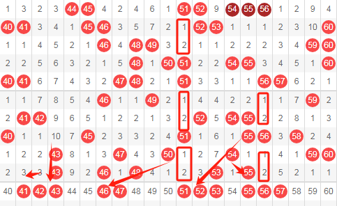 今日五区号码建议参考42 43的反L形态,防41号213形态开出,参考46重号,防守47的梅花号落位,六区号码建议参考56的斜连等期遗漏开出,参考55重号,防55 56对子号同时落位形成一个勺子形态,这个地方同时要注意防守51 52 53直接四斜连转横连。五区六区推荐号码41 42 43 46 47 51 52 53 55 56 57