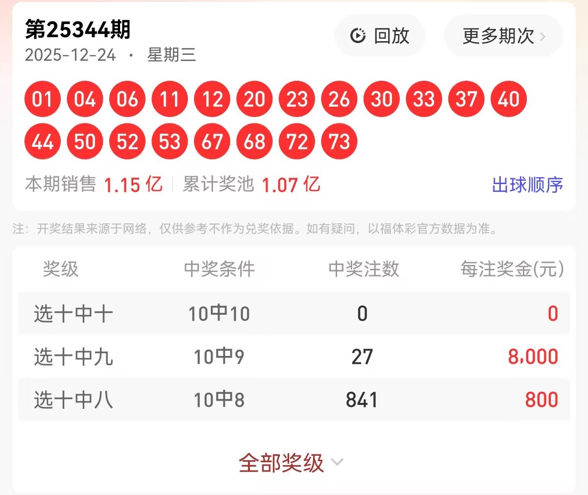 上期福彩快乐8第 2025344期开奖号码为【01 04 06 11 12 20 23 26 30 33 37 40 44 50 52 53 67 68 72 73】,其中大小比8:12,奇偶比为8:12,和值为722,跨度72,四区间比为6:6:4:4。下面是对本期对于每个号码的详细分析。
