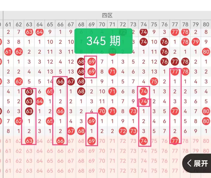 上期第四区间开奖4个号码,本期有望回补增加。63是61-65段的奇数,上期该段无出号,63的加入能填补区间起始段的空白,完善整体分布;66是66-70段的偶数,上期该段有67、68两枚号码,66作为前置补位号,与上期出号形成呼应;69是66-70段的奇数,与66形成奇偶搭配;74是71-75段的偶数,上期该段有72、73两枚号码,74作为后置补位号,衔接上期出号趋势;77是76-80段的奇数,上期该段无出号,77能填补区间末端的空缺。