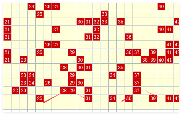 第二区【21-40】 上期开出6枚奖号。该区出现4个奖号后,下期通常开出53-4个号码。