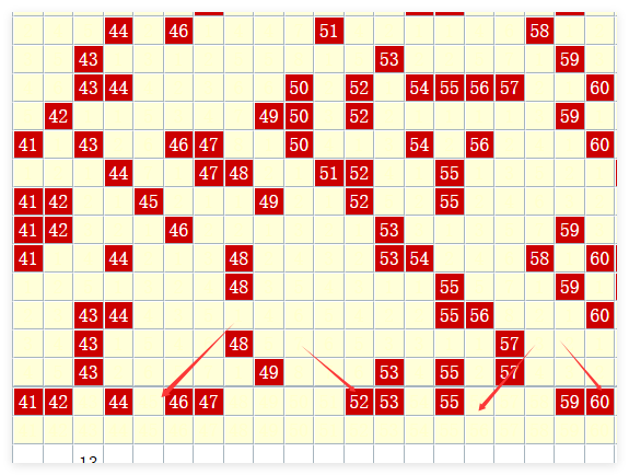 第三区【41-60】 上期开出5枚奖号,近期该区表现较热。