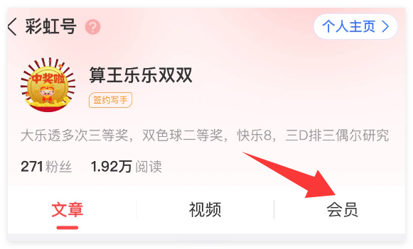 2.进入主页可以看到文章、视频、会员。点击会员就可以看到今日的推荐了。
