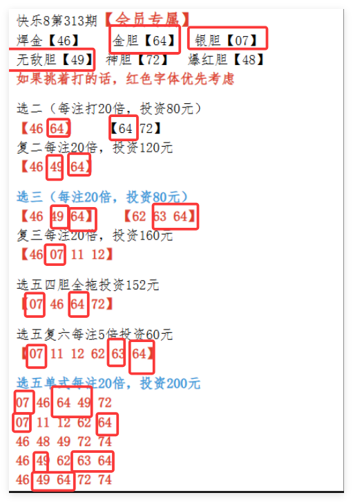 快乐8第314期分析