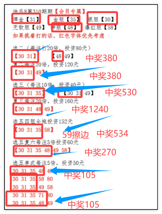 最近几期会员成绩回顾:308期全红 310期全红 312期 六胆中三 313期小红