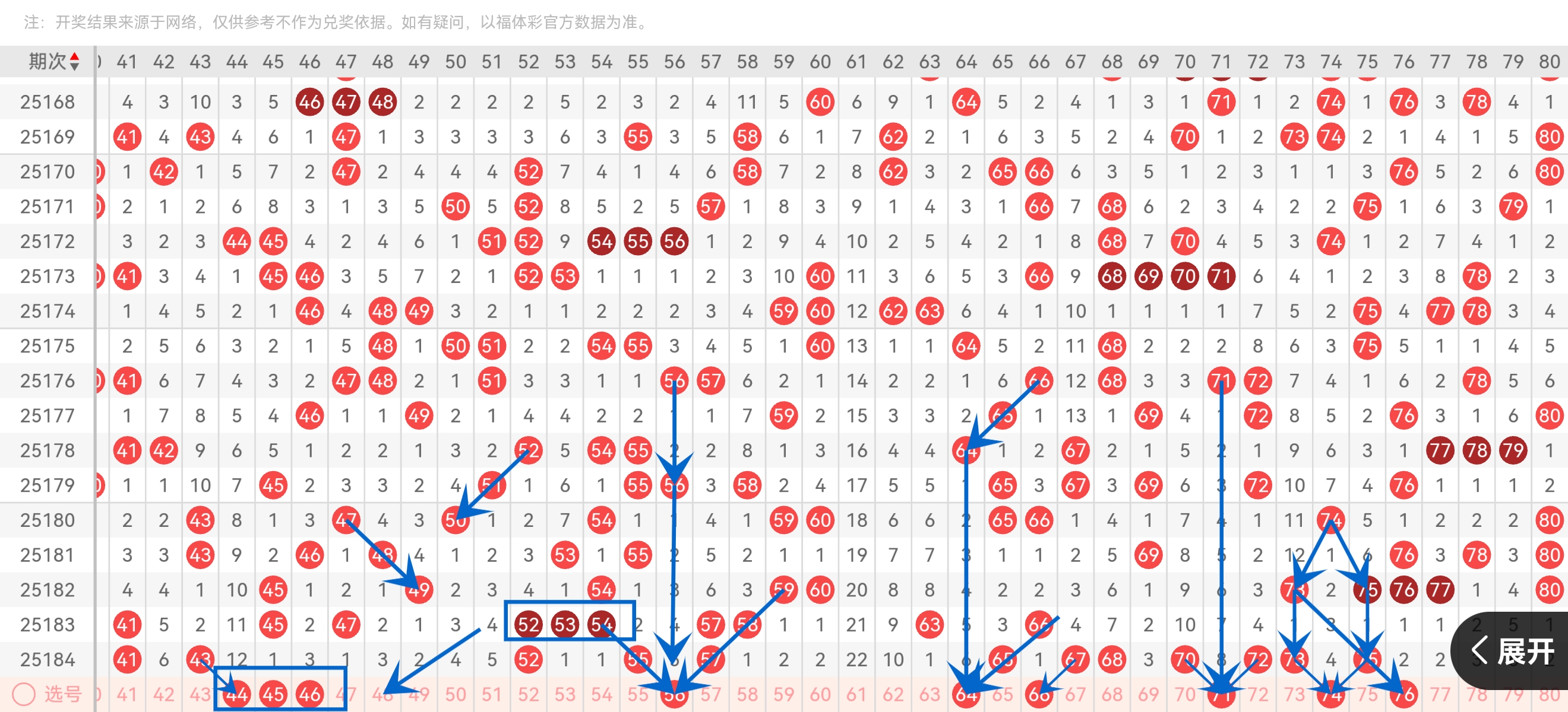 理由 :尾数4冷极必破,65-75热区左溢第一靶点(65←64)。