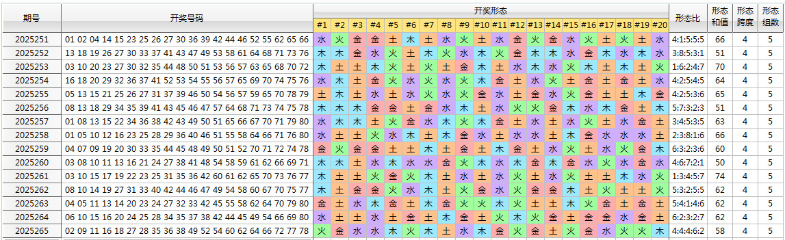 禾墨25266期快乐8五行能量图谱:土弱金旺,顺势金水为上