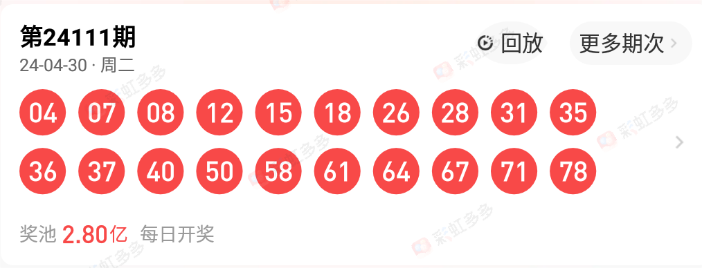 首先看上期回顾,“快乐8”24111期开奖结果: