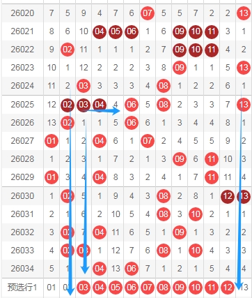 大家好,本人蔡楚门,一个玩彩十几年的老彩民,现在来本平台分享一下本人的对彩票的分析思路和看法,希望本人的文章能够给你们带来灵感和好的运气,首先感谢一起彩提供一个好的平台,接下来分析一下福彩快乐8第2026035期号码思路。换个方法来分析福彩快乐8思路,以防新彩民不会懂下面名词意思,先给大家下面名称解释,连号组合是像0102 0203 0304 0405这样的组合,跨度二组合是像0103 0204 0305 0406这样的组合。重点看下面走势图的用蓝色小圈圈标注出来的地方。我只分析连号和跨度二组合,只想着能对个选二或者选四就够了。