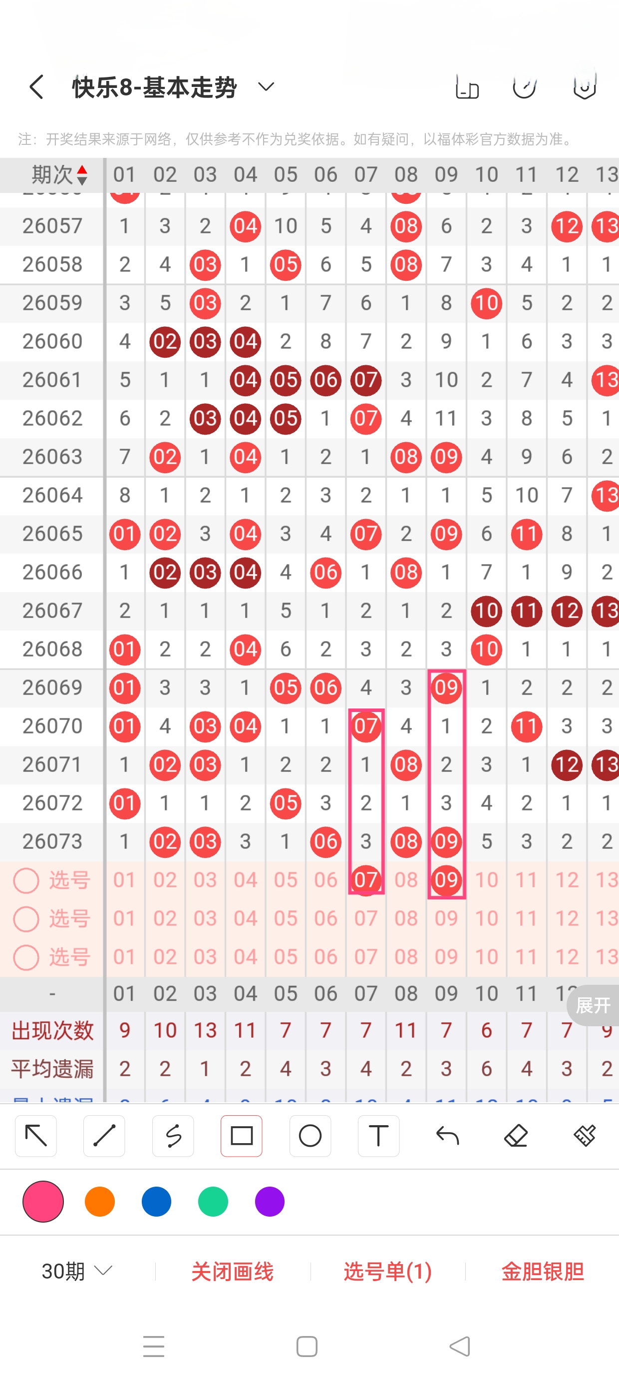 上期本区开出号码6枚,较上期对比增加3枚,近3期本区出号比例:7:3:6,出号呈减少趋势,本期看好出号3-4枚。以走势图来看,7呈上下间隔4-3的对称走势。9呈上下间隔3-3的对称走势。本区推荐号码7、9