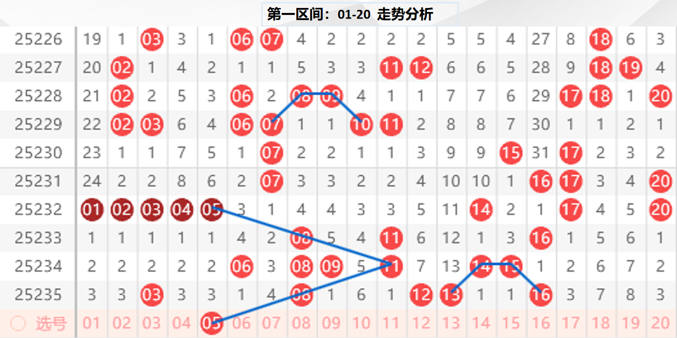 一区分析:【01-20】(走势图标注号码非小黄车大底,请谨慎参考,具体思路将在直播间分享讨论)