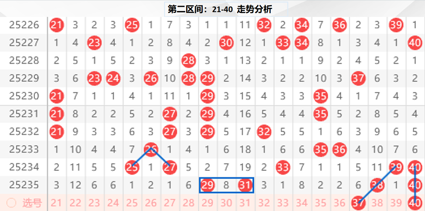 二区分析:【21-40】(走势图标注号码非小黄车大底,请谨慎参考,具体思路将在直播间分享讨论)