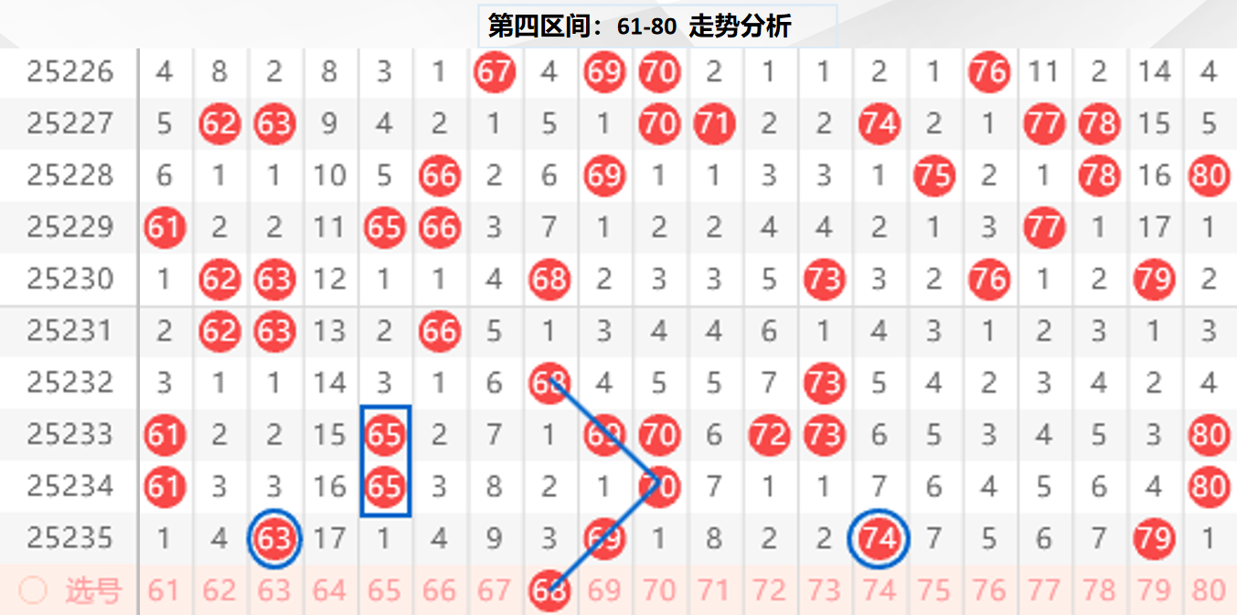 四区分析:【61-80】(走势图标注号码非小黄车大底,请谨慎参考,具体思路将在直播间分享讨论)