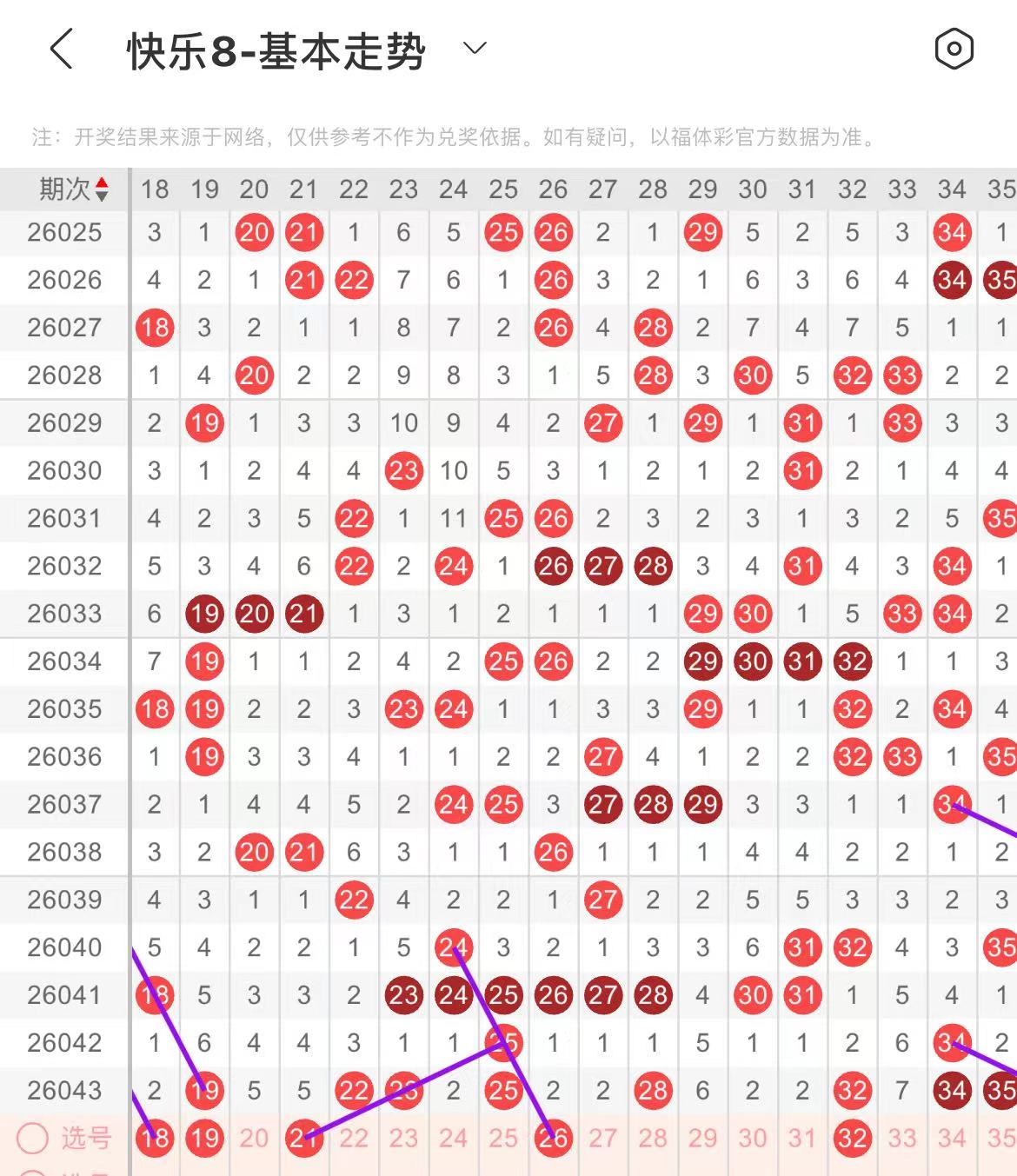 21-30区:本区间上期开出了四个号码,从号码走势图上看,该区现属于温热区,出号个数在两个号码左右,有出号走势的号码有21.26号,均有斜连出号走势,有同出的可能。