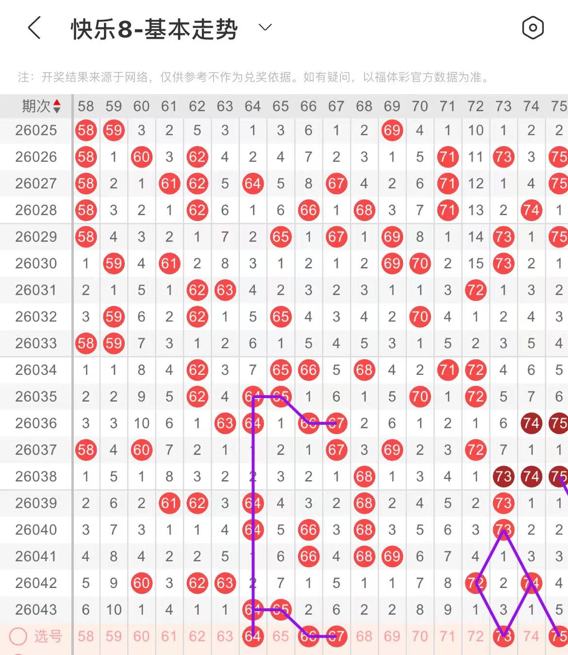 61-70区:本区间上期开出了两个号码,从号码走势图上看,本期重点关注区中号码回补,出号个数在两个号码左右,有出号走势的号码有64号,三次双重号出号走势,66.67号,同出,复制上面走势出号。
