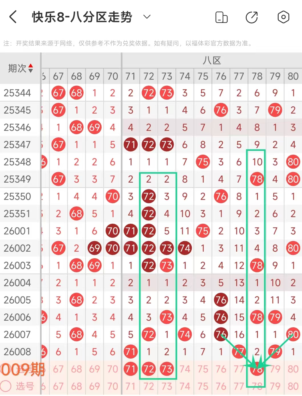 上期八区开出71 77 79这3个号码, 本期可以考虑3个左右