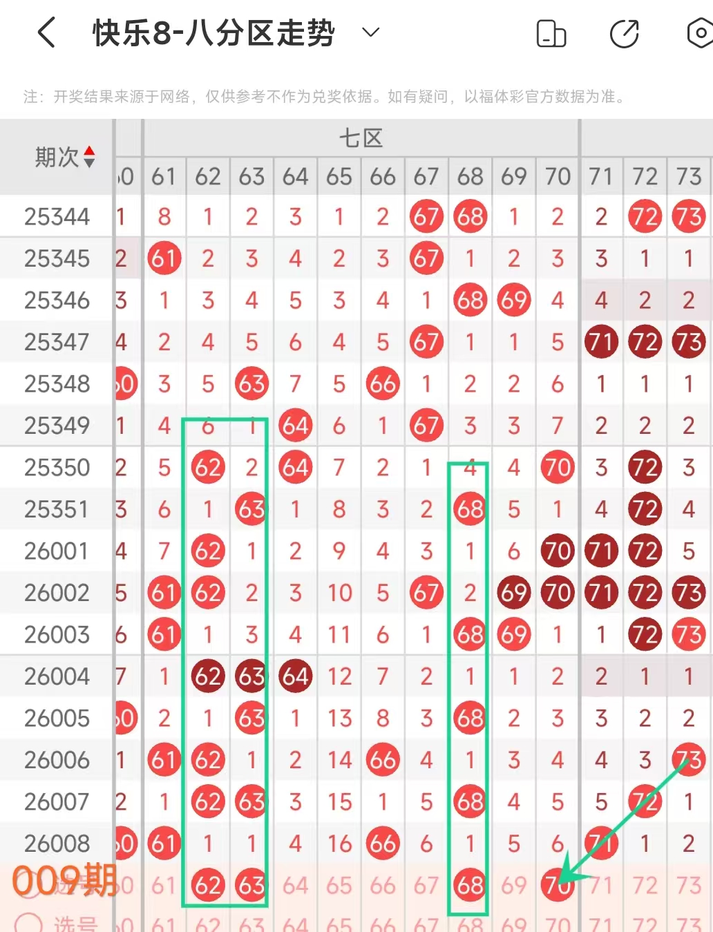 上期七区开出61 66这2个号码,本期考虑出3个左右。
