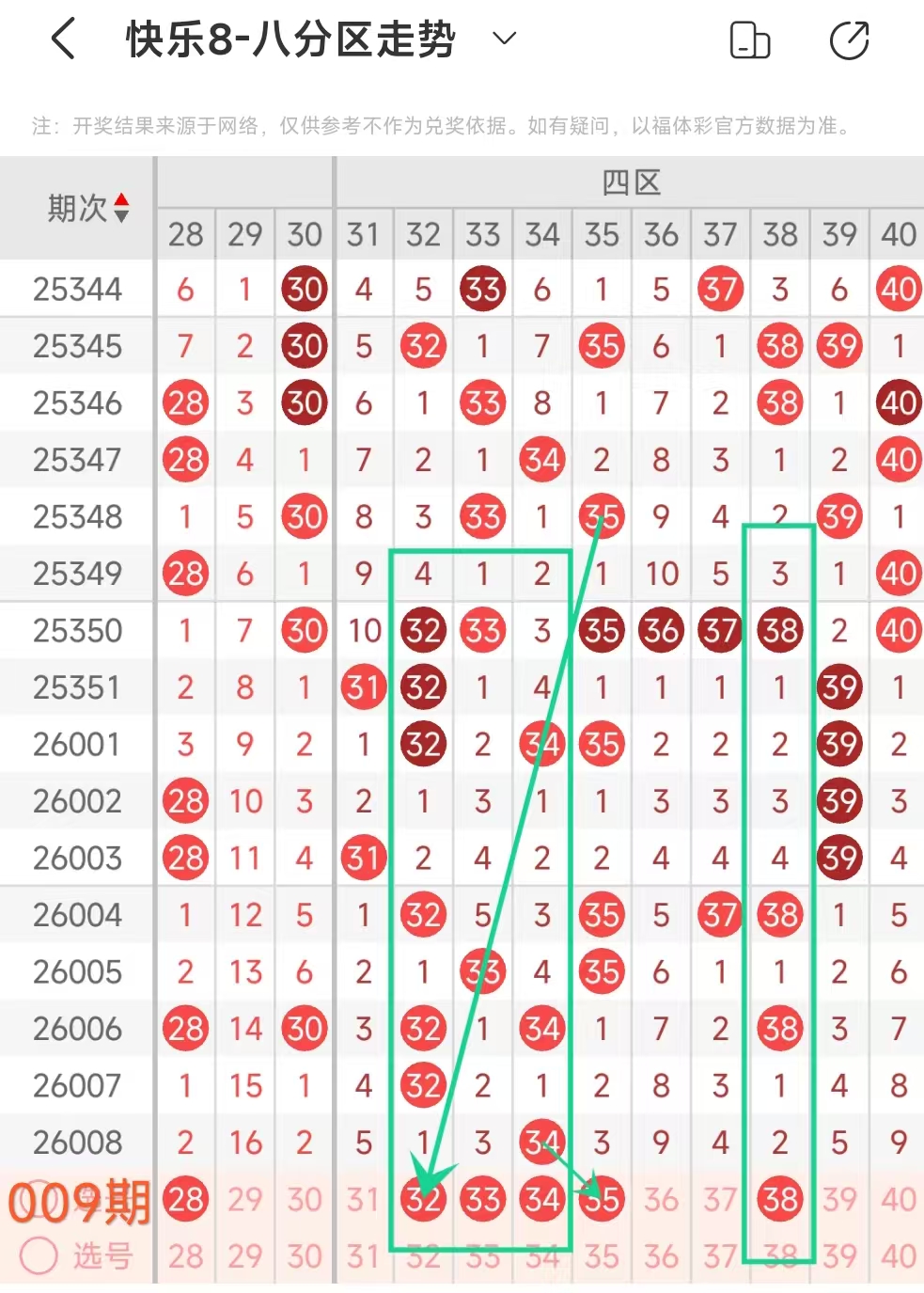 在快乐8的探索之旅中,通过对开奖走势图细致入微的观察,我们总结出一些具有参考价值的规律。几乎每一期开奖号码都呈现出以下显著特征:其一,大概率出现连号;其二,常常伴有边码;其三,遗漏值为1 2 3的号码频繁现身;其四,重号现象也较为常见。掌握这些要点,能为我们的投注提供方向指引。我们约定采用八分区走势图来展开分析。