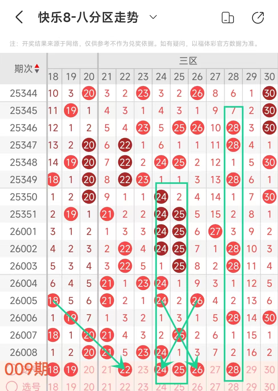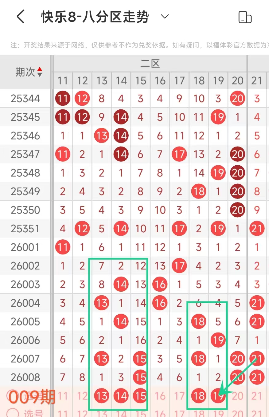 上期二区开出15 20这2个号码,本期应该出3个左右。