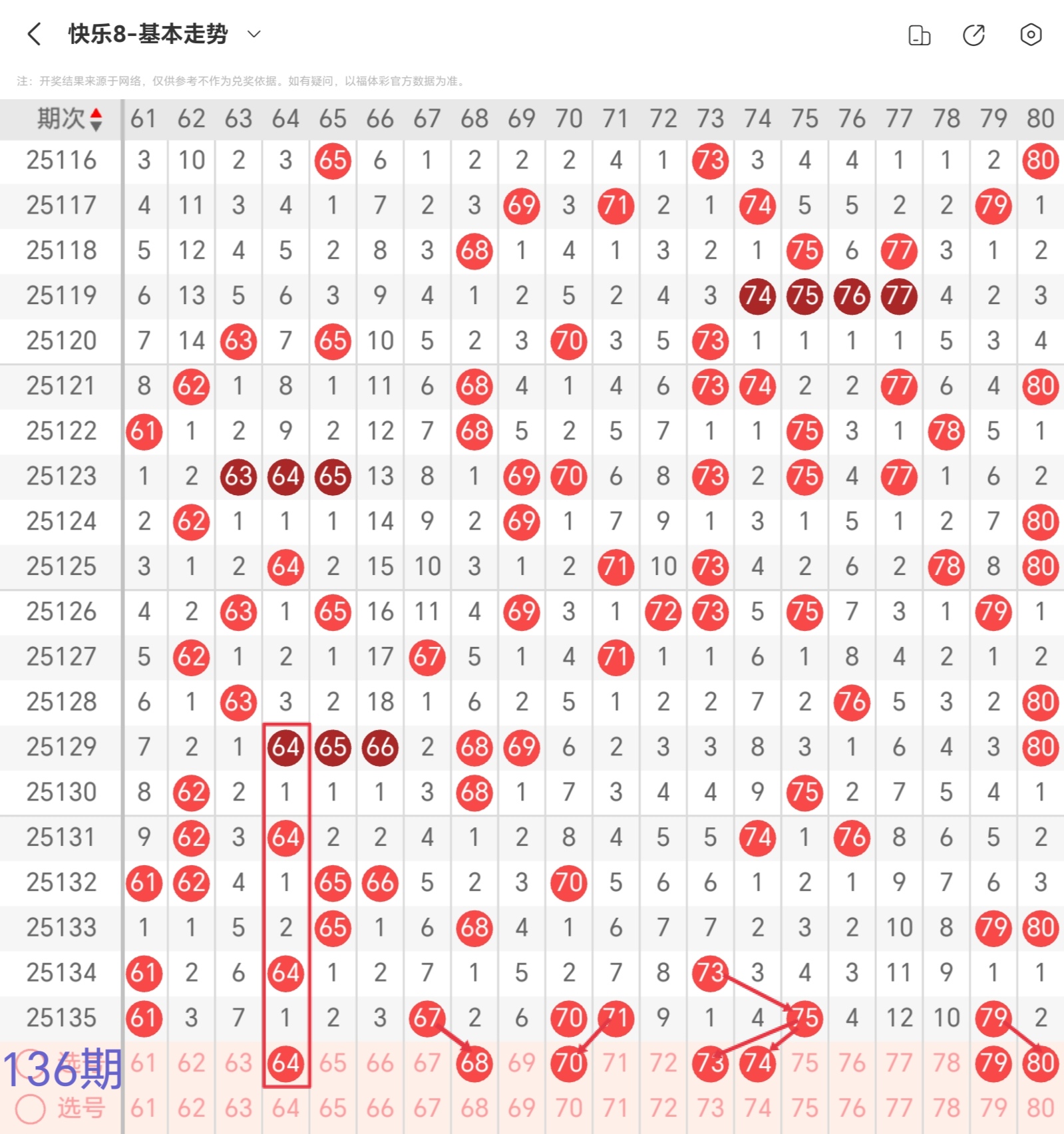 大家好,我是彩虹号作者——幸运姐。欢迎阅读我的文章,本期通过对区间分析和每周走势分析接着和大家分享快乐8的选号思路,大家理性参考!相信自己!