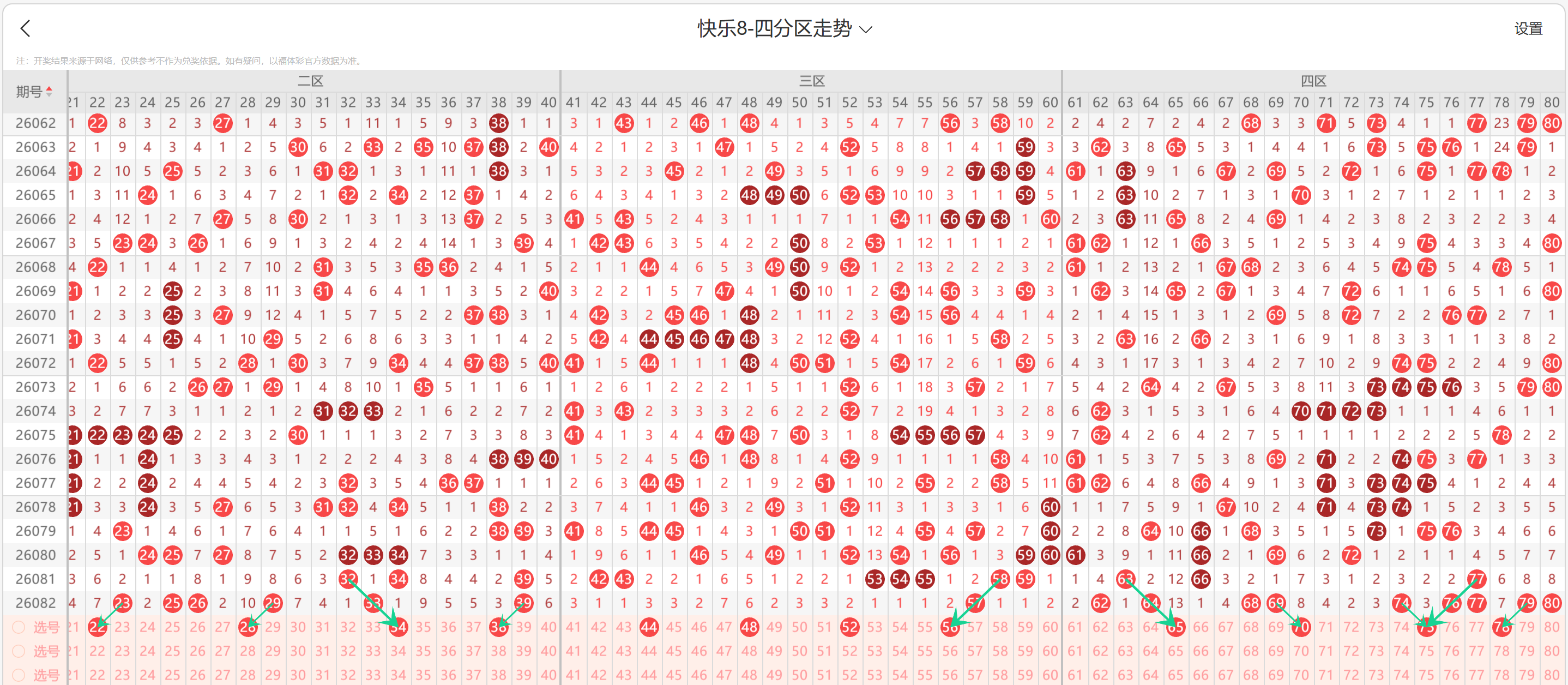 * **综合推荐**:本期四区建议关注号码:**62-69-70-77-79-80**
