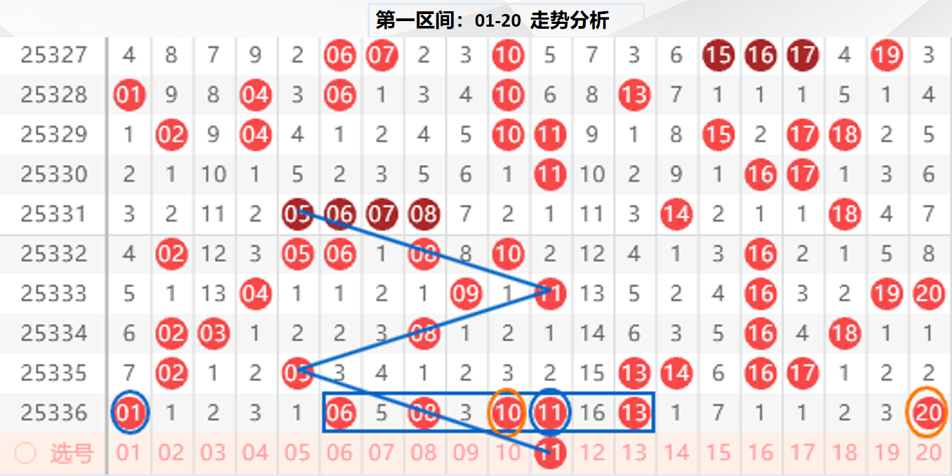 一区分析:【01-20】(走势图标注号码非小黄车大底,请谨慎参考,具体思路将在直播间分享讨论)