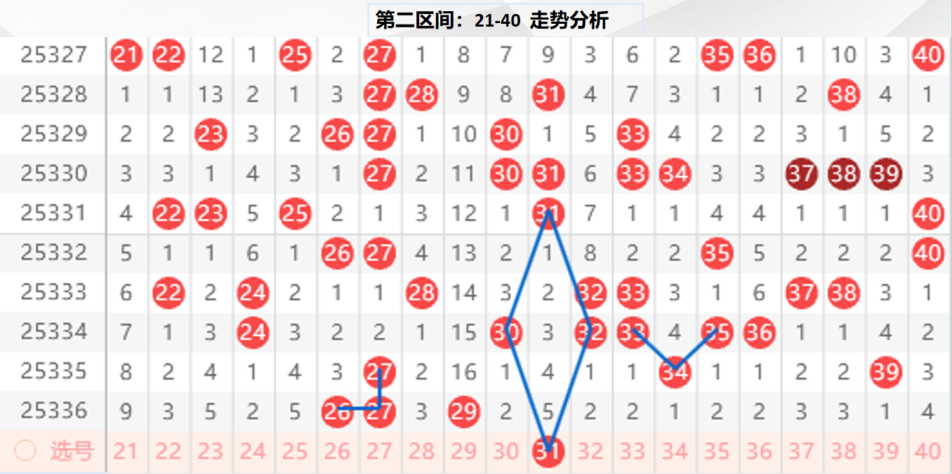 二区分析:【21-40】(走势图标注号码非小黄车大底,请谨慎参考,具体思路将在直播间分享讨论)