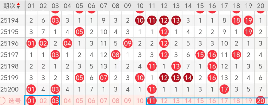 福彩快乐8第25201期 上期中胆码01
