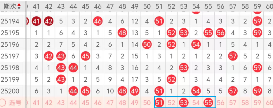 第三区间的走势分析:第三区间上期开出了八个号码球!主要的落号点位在三区间的45-59之间,走出了五奇三偶的形态。上期龙头开出了44,凤尾59,根据三区间的走势规律!今天的三区间龙头转51,走出重码的形态!再看54的分边码53 55,形成了51 53 55热码组合的形态!今天的三区间主看51-55之间号码的回补!因为最近它们上方比较走热。今天这里应该有号码落下。大家参考!