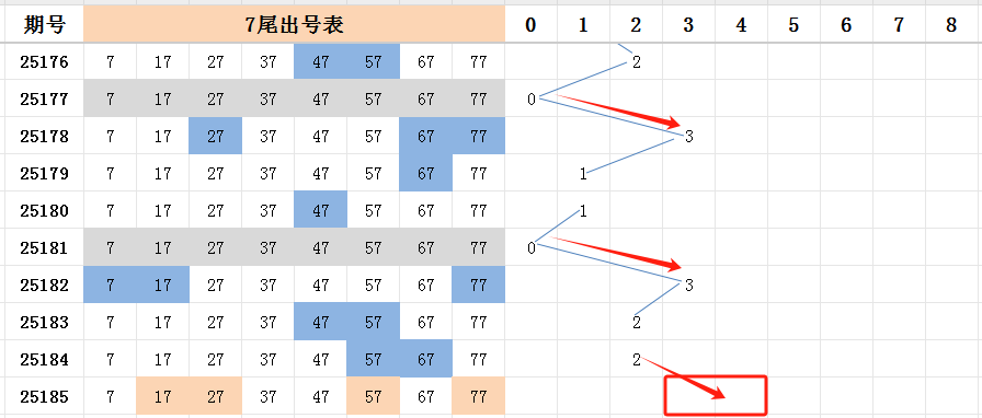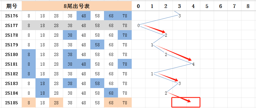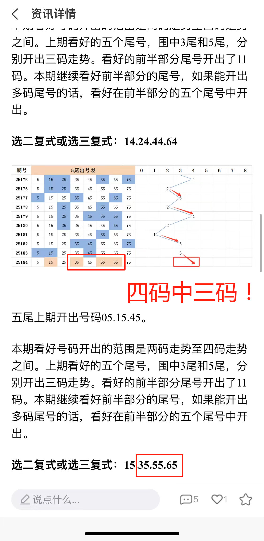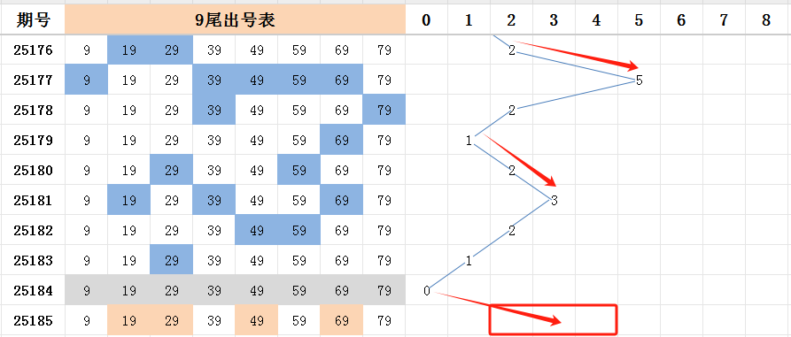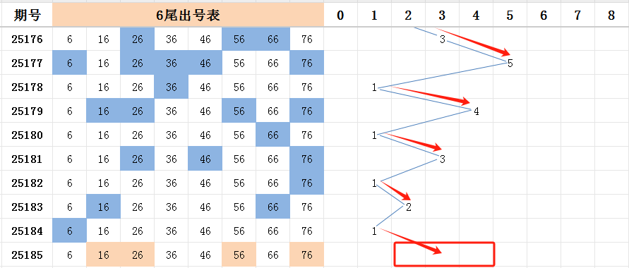本期看好号码开出的范围是两码走势至四码走势之间。上期看好的五个尾号,围中2尾和5尾,5尾开出五码走势,2尾开出四码走势!近期开出的多码尾号的期数,均判断正确!是有规律性的!分别是175期、177期、180期、184期,间隔期数分别是1-2-3!本期看好后半部分的尾号!
