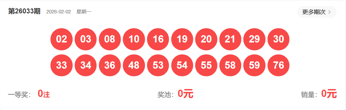 快乐8第033期开奖如下