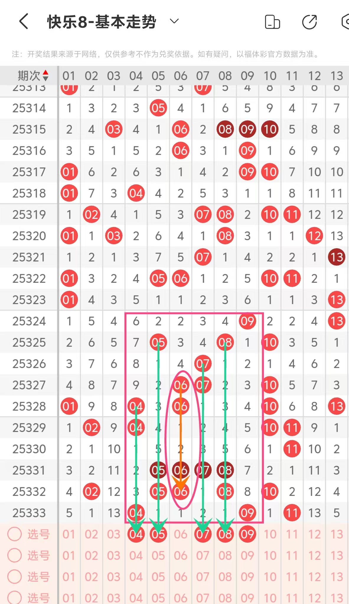 李照黑快乐八25334期走势图分析,上期中奖了!冲三连红!