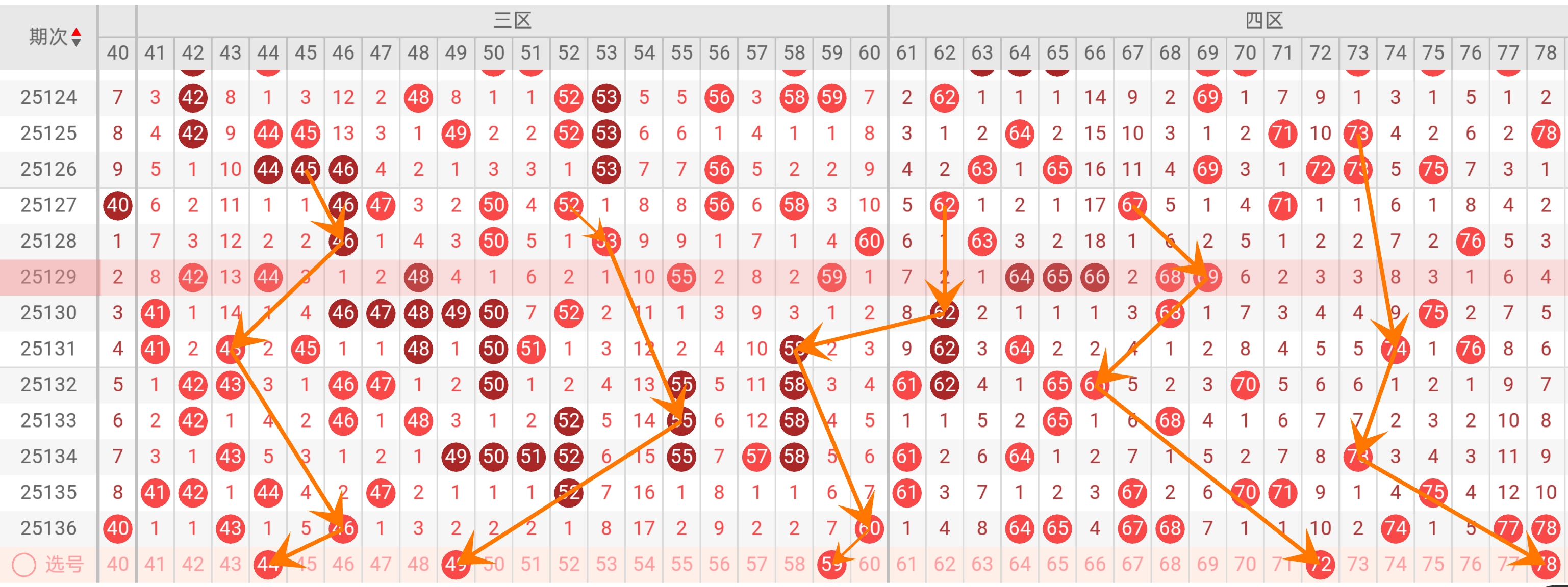 核心热号:78、65、69覆盖7080新热区,59、56、51布局5060区间。