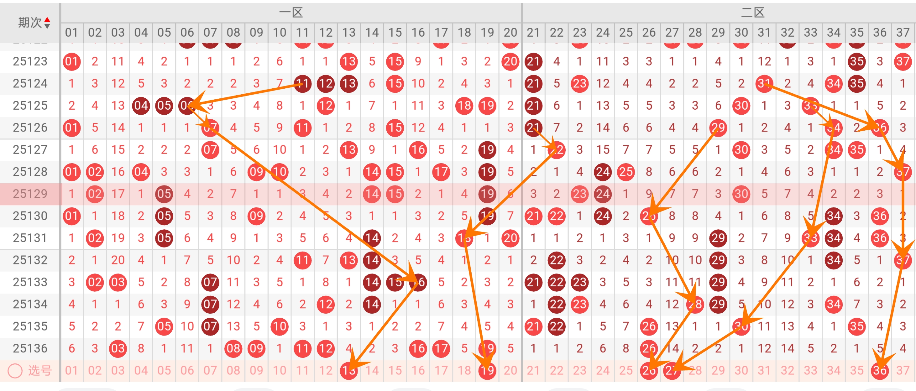 36(5次,与33形成跨区连号3336)