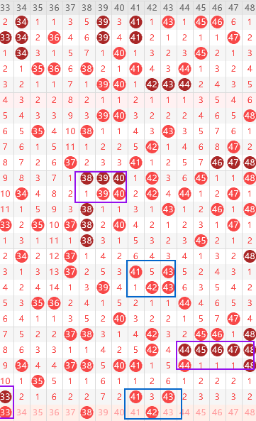 三区胆1尾2尾,看好出3-4码,边号34  40 42 44出一码,重号33 41 43出一码,最近重号断2期就回补,本期大概率有重号41 33二出一,优先41,其次42是夹子号,如果41走重,42能一起下,41 42可以同出,防38,4尾到出号周期,本期34 44大概率能下一码,结论关注五码33 34 41 42 38 防44,一胆42 双胆41 42