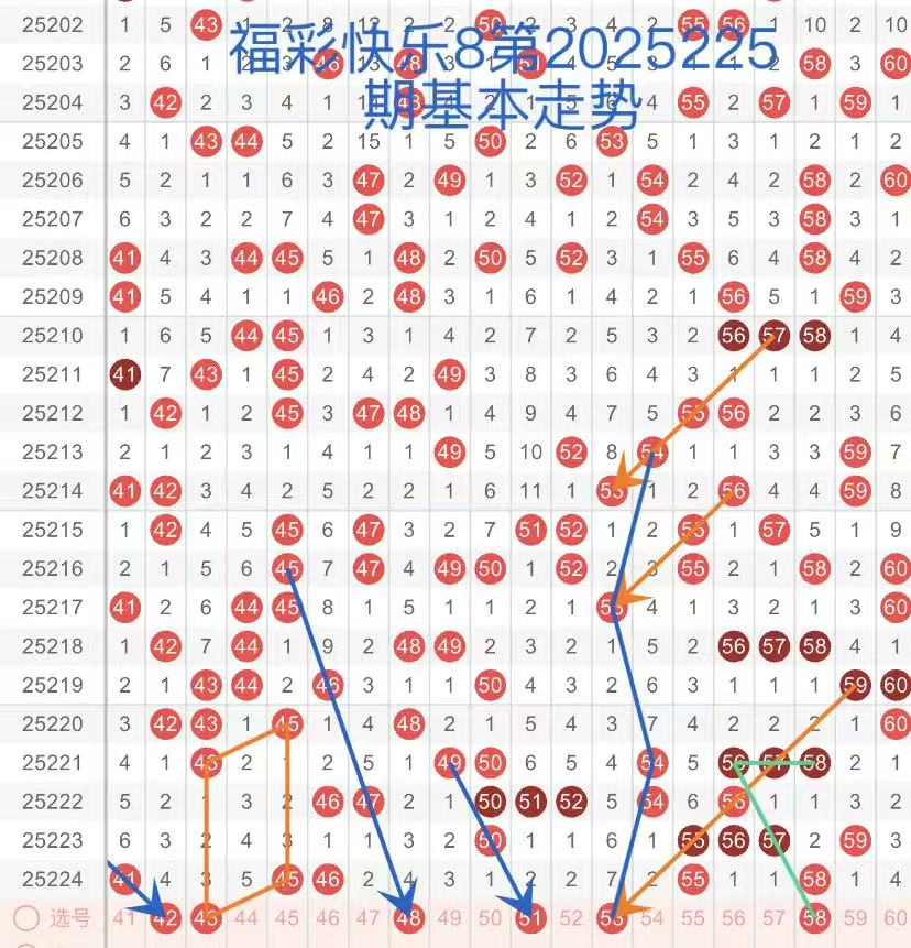 25225期福彩快乐8,走势综合分析(本期一胆参考53)