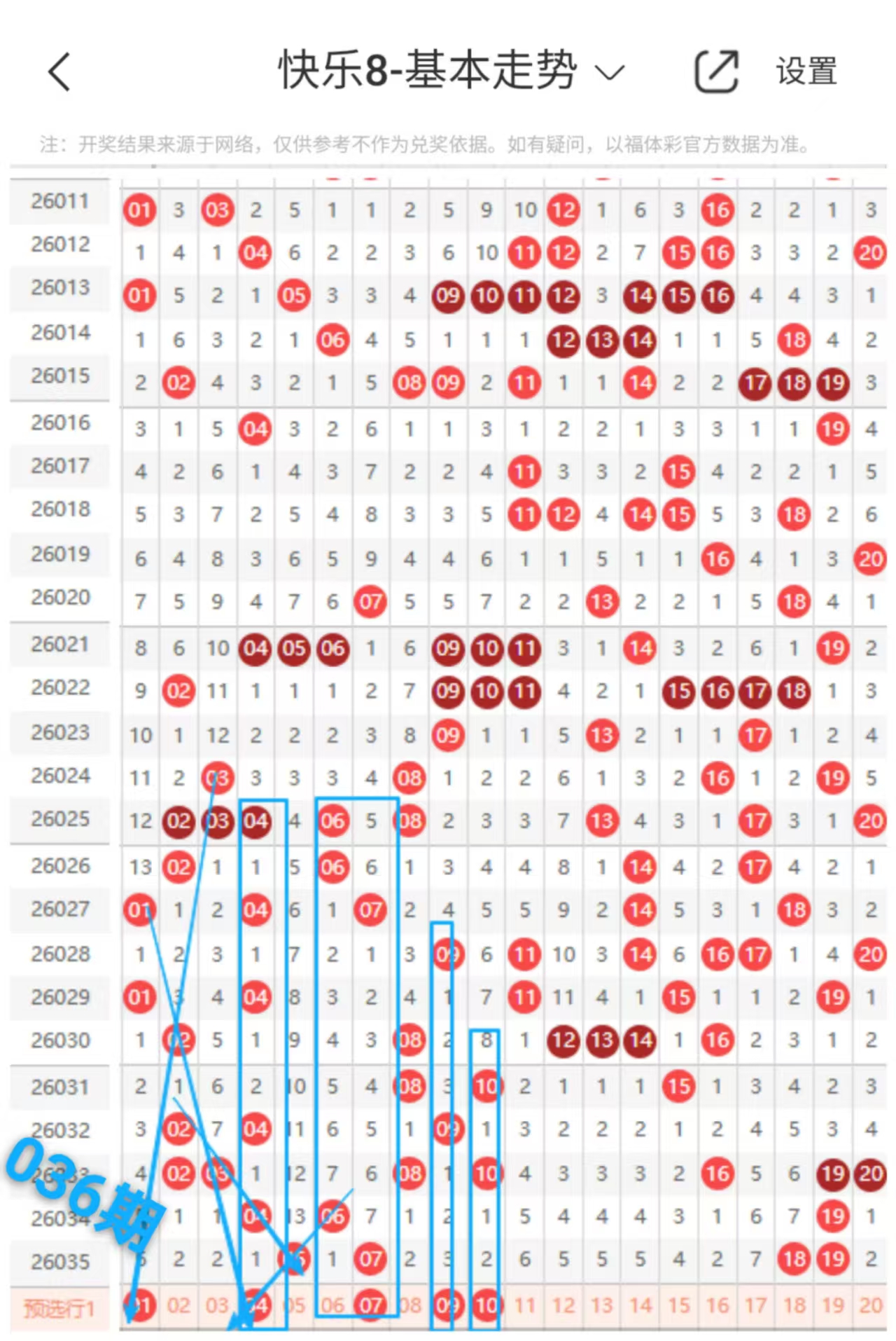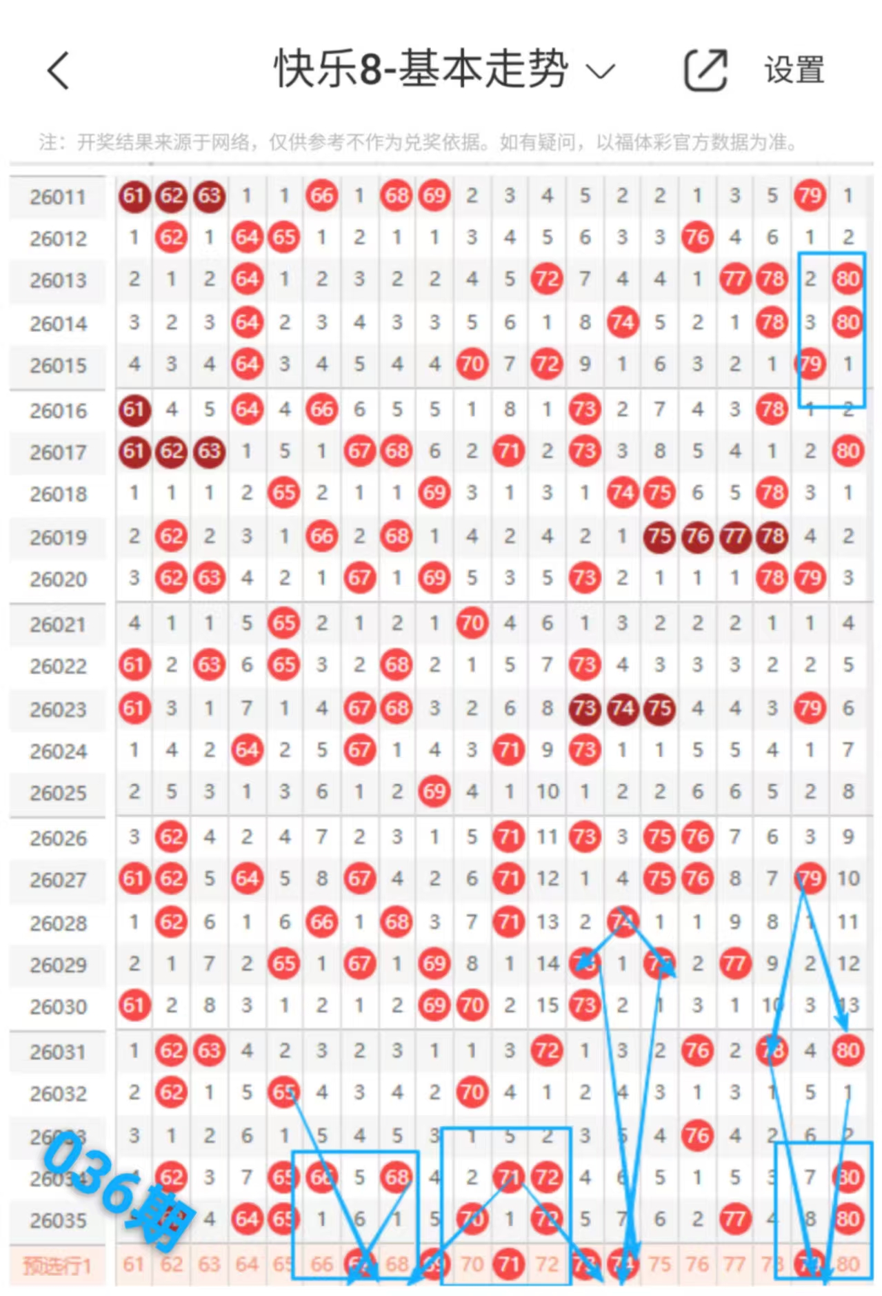 快乐八036期走势分析(本期机会不错+继续跟上吃肉)