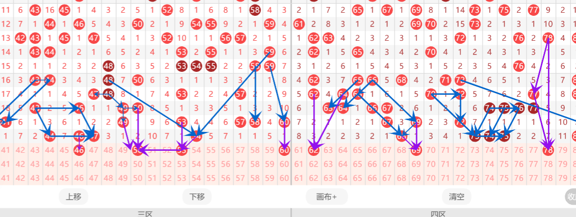 第二:判断第一区间热度会有所上升,注意一些奇数偶数搭配的联动号码,需关注斜连形态的号码。