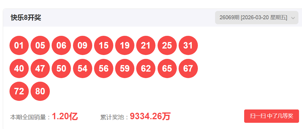 一、快乐八2026069期开奖号码