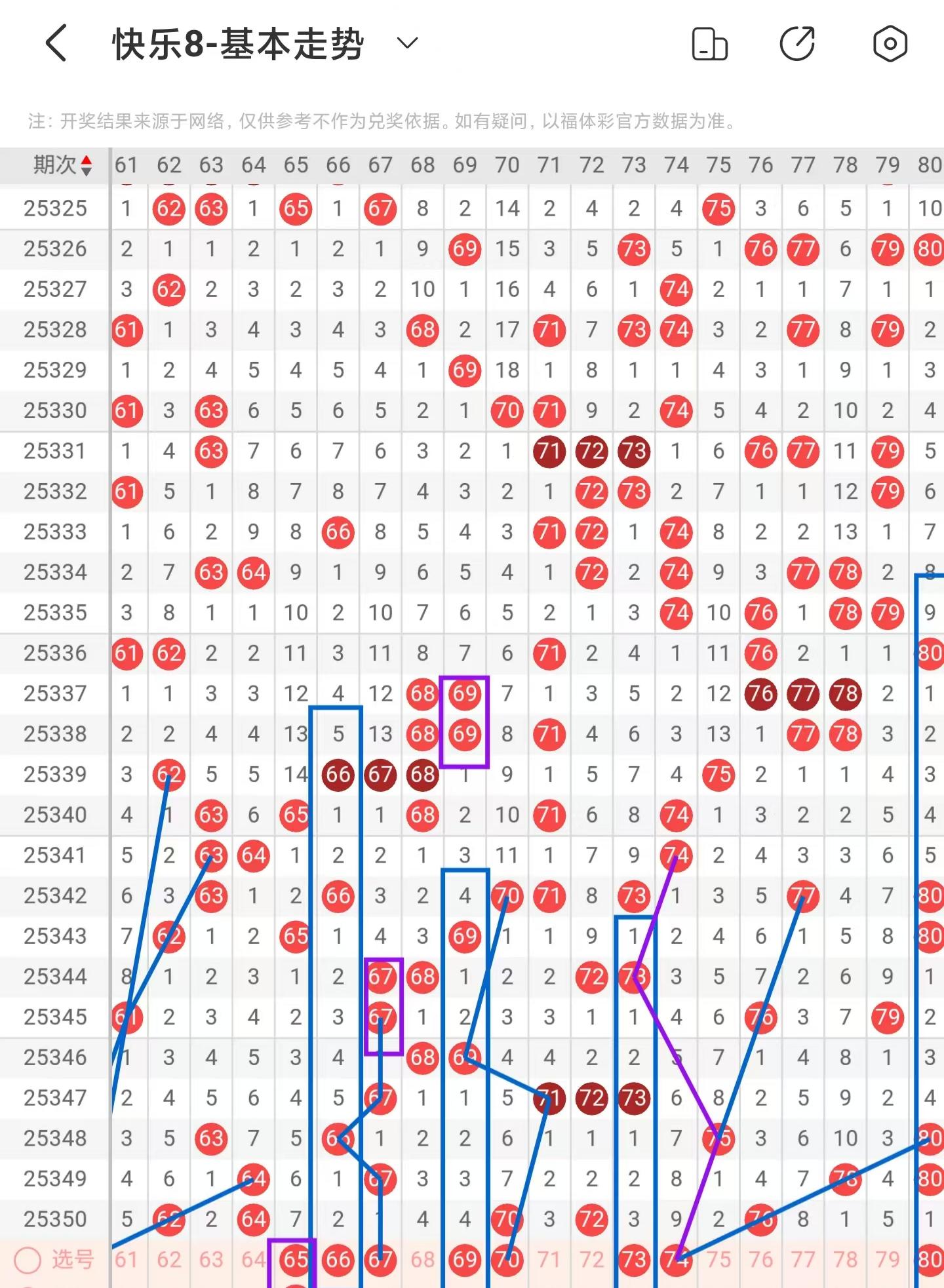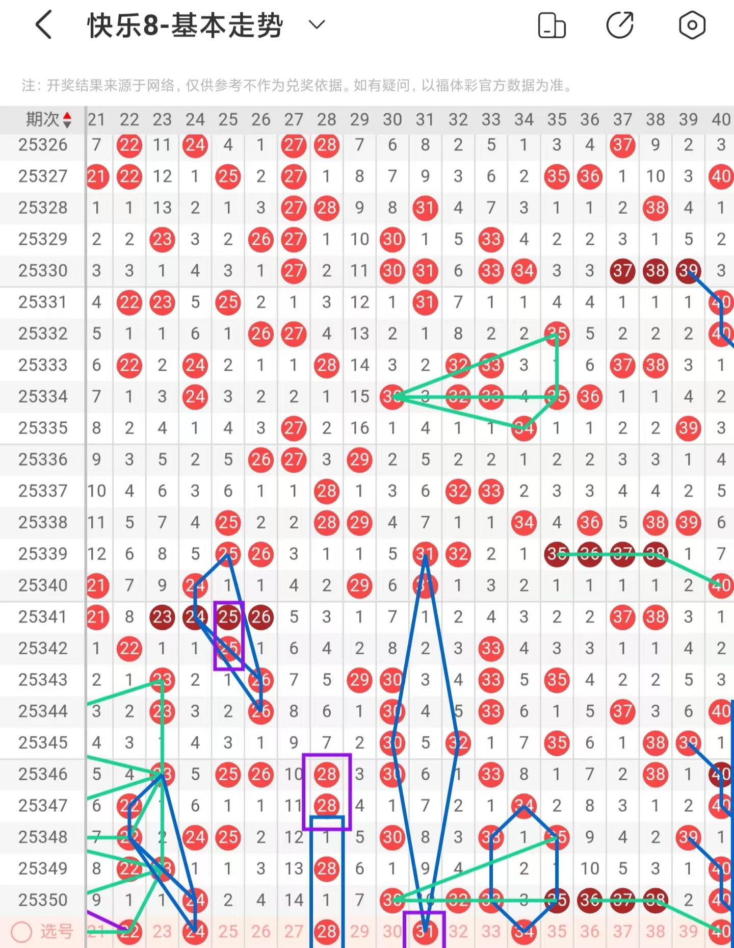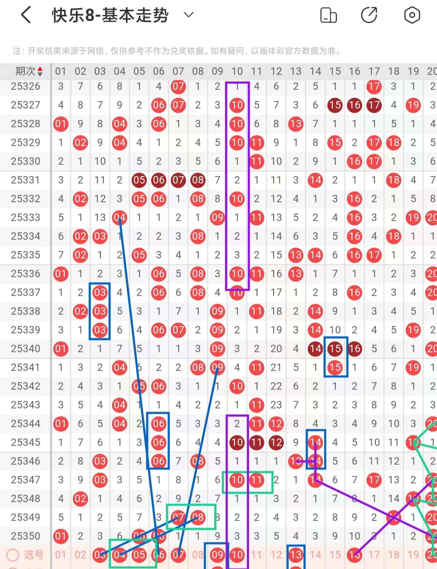 快乐八2025351期出号分析,上期区间分析选二复式中