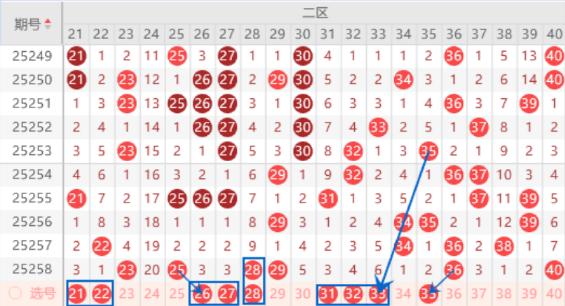 下图为21-40号数字区间走势分析图: