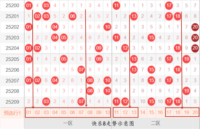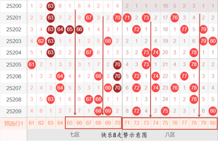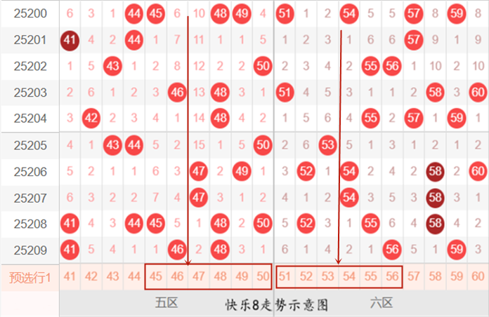 快乐8第25210期:上期重点胆码点位六中五开出六码、选三中二、四胆中二胆