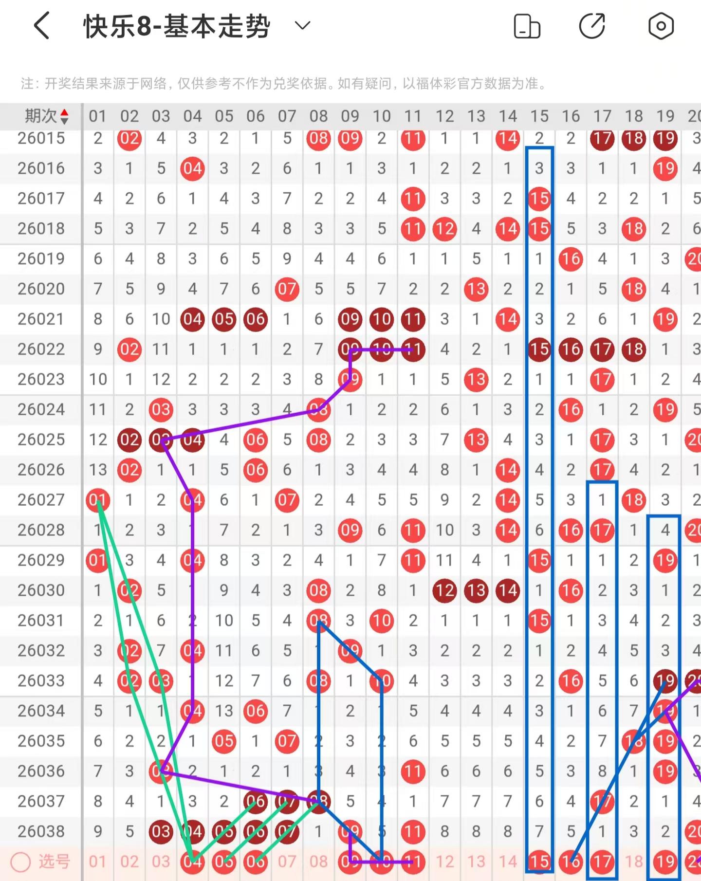 快乐八2026039期出号分析,上期区间分析选二复式中