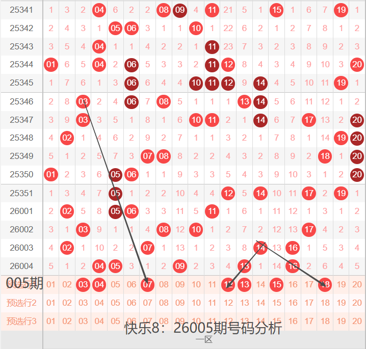 快乐8:26005期号码走势分析(26年,祝大家好运连连)