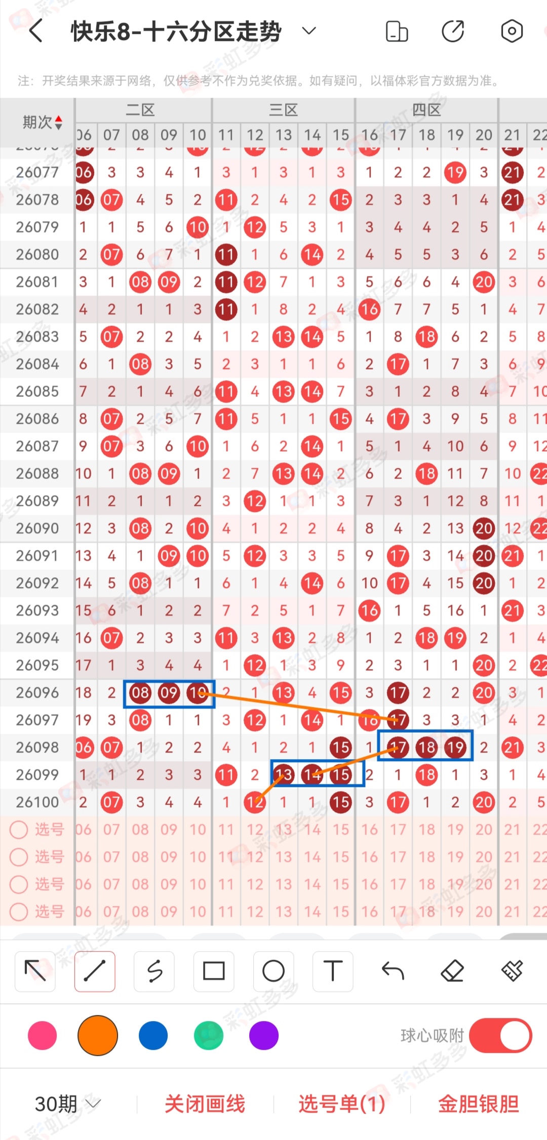 强烈说明一下昨天的12出来,只能说运气好。但是12不考虑走势画图,根据近期的连号特点可以得出定位。第一次的08 09 10相加得出尾号是7尾,第二天1头出17。本身0头的3连是不常见的所以这里的加法定位正确率普遍较高。第二次的17 18 19相加尾号是4尾,第二天1头出14。第三次的13 14 15相加尾号是2尾,第二天1头出12。所以这里的连号相加定位区间尾号,不知道你们学会了没有。注意不要向外人透露。当然这个是有风险的,没有一成不变,重要的是考虑高频,大家通过自己的总结去延伸,比方说4连会有什么样的看法,只要得出的结果能过大方向的验证,如果是百分百对的,那么小心了,很有可能你会跌一波大的,快乐8只能说通过计算得出一个大概率程度,不会有定下来的逻辑。短期内稳定已经是很不错的,如果规律一直不变,心里想想成立不成立,都是聪明人。上面的分享可以记住一句话,0头3连定1头,1头3连看自身。