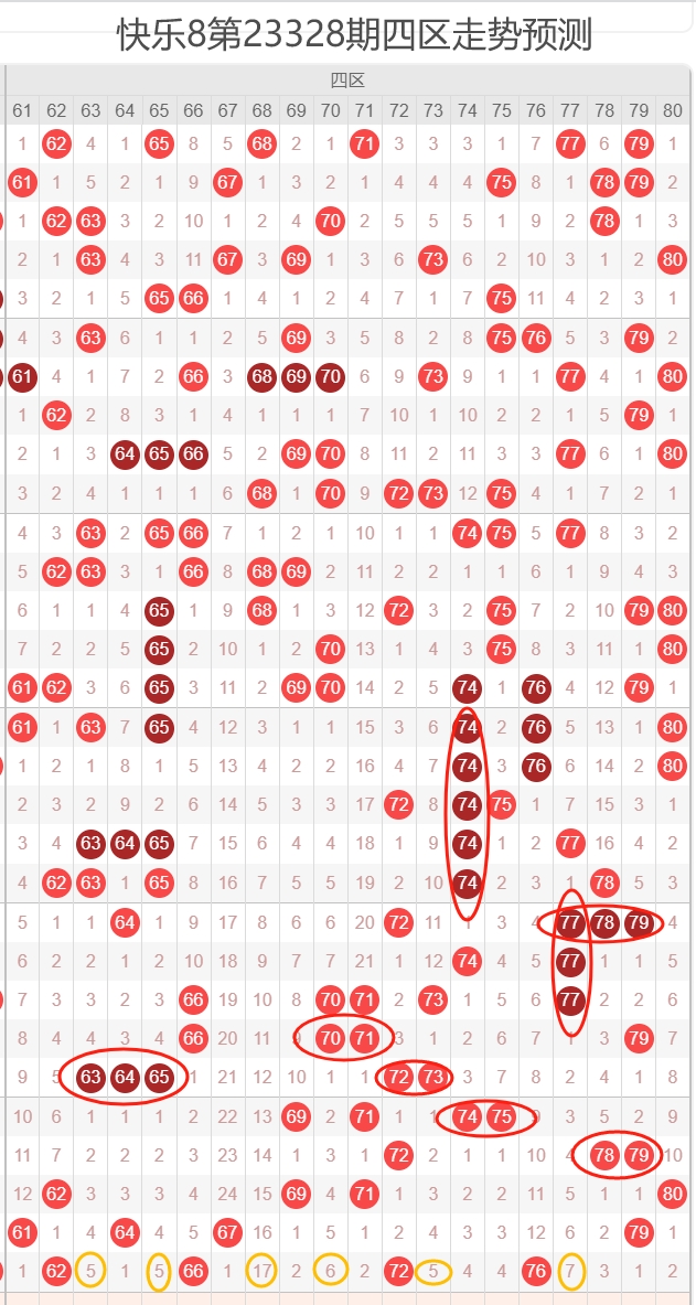 本期四区预测号码为:61 63 64 67 69 71 72 75 79 80
