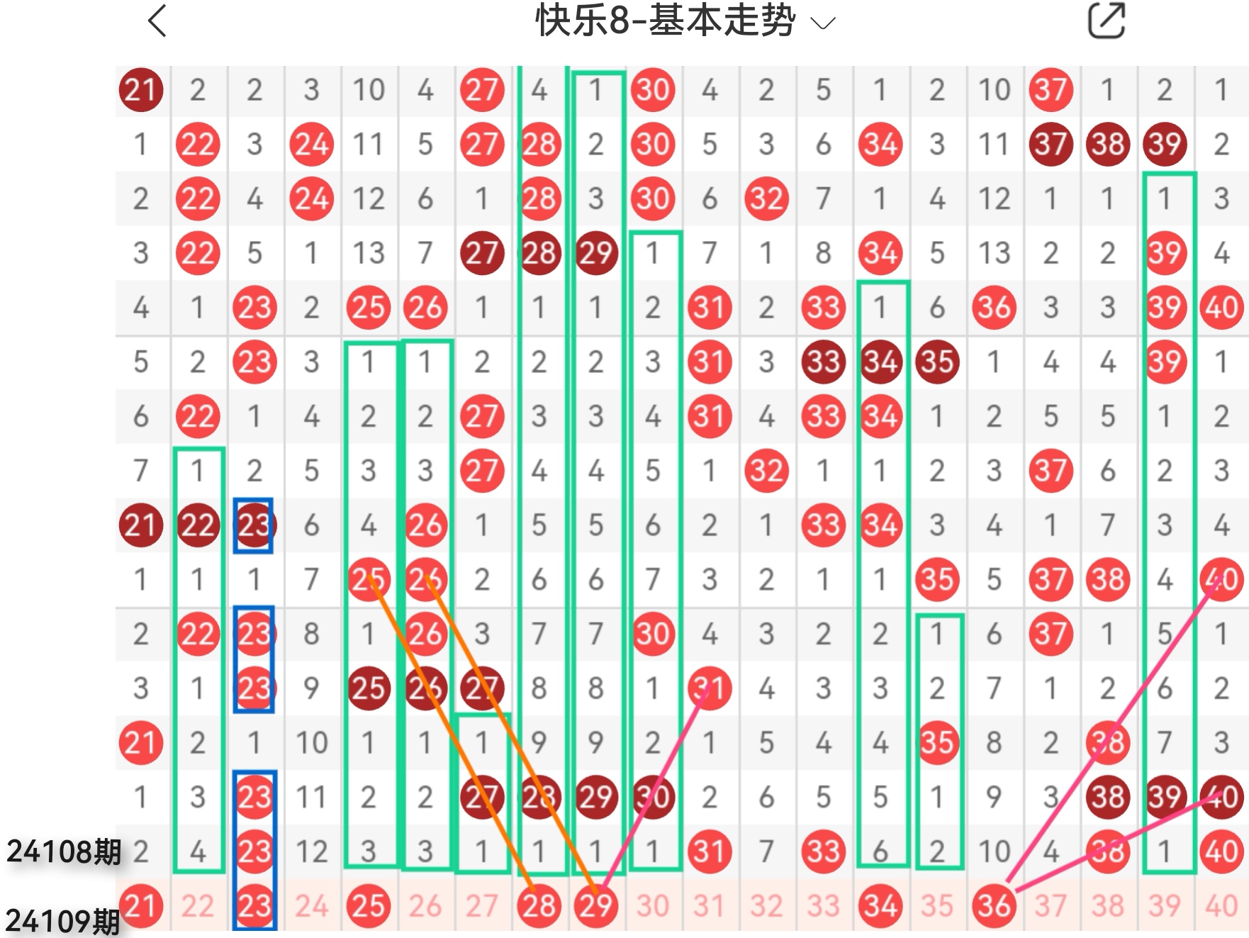 快乐八第24109期走势预测(上期金胆正确,特号二对一,选三中二对一组)
