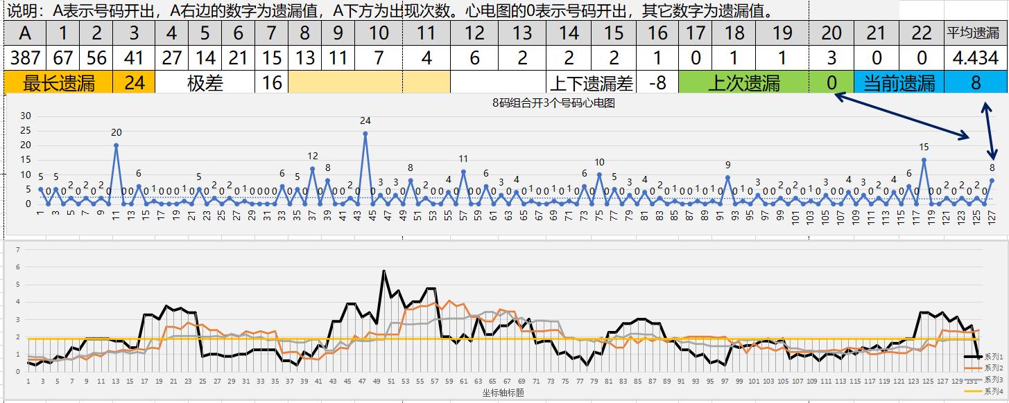 再来看一下这8码组合开任意3个号码的心电图,如下:
