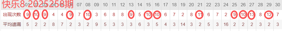 快乐8热号选择标准参考图(以30期为基准)所圈即为部分热码示意图