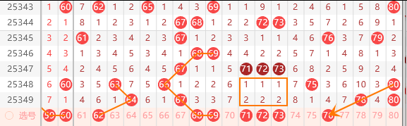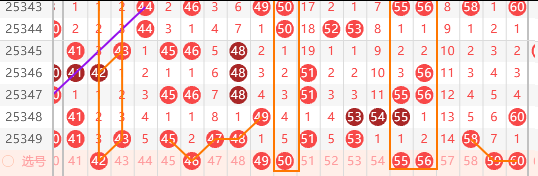 头部走重带空位组合下落且四字头多开造就该区间开出八个落位码;本期可关注41 43跟随形态42落位点位下落开出,且42 46两码形态相同,可关注等于一码开出下落;若该区间持续走热,需要关注五字头热态回补,那么五字头在布局上可以多考虑连号下落形成回补落位;